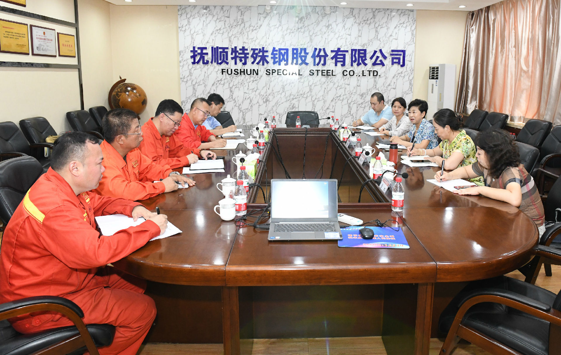 在公司1號會議室,祁勇對王玉霜一行的到來表示歡迎,并感謝市總工會多年來對撫順特鋼的大力支持和幫助。他向客人介紹了公司近期生產(chǎn)經(jīng)營及工會工作開展情況,并就勞模創(chuàng)新工作室、員工培訓(xùn)、企業(yè)文化建設(shè)等方面工作進(jìn)行了匯報。他說,撫順特鋼將繼續(xù)堅持走“特鋼更特”的發(fā)展道路,以科技創(chuàng)新、工藝優(yōu)化為抓手大力提升和發(fā)展新質(zhì)生產(chǎn)力。公司工會將通過勞模創(chuàng)新工作室、員工培訓(xùn)基地等平臺加強技能人才培養(yǎng)工作,持續(xù)做好員工技能的“傳、幫、帶”,在全面振興新突破三年行動中貢獻(xiàn)工人階級的智慧和力量。希望市總工會在員工培訓(xùn)、勞模工作室建設(shè)、工會經(jīng)費的使用和返還等方面給予支持和幫助,助力企業(yè)高質(zhì)量發(fā)展。