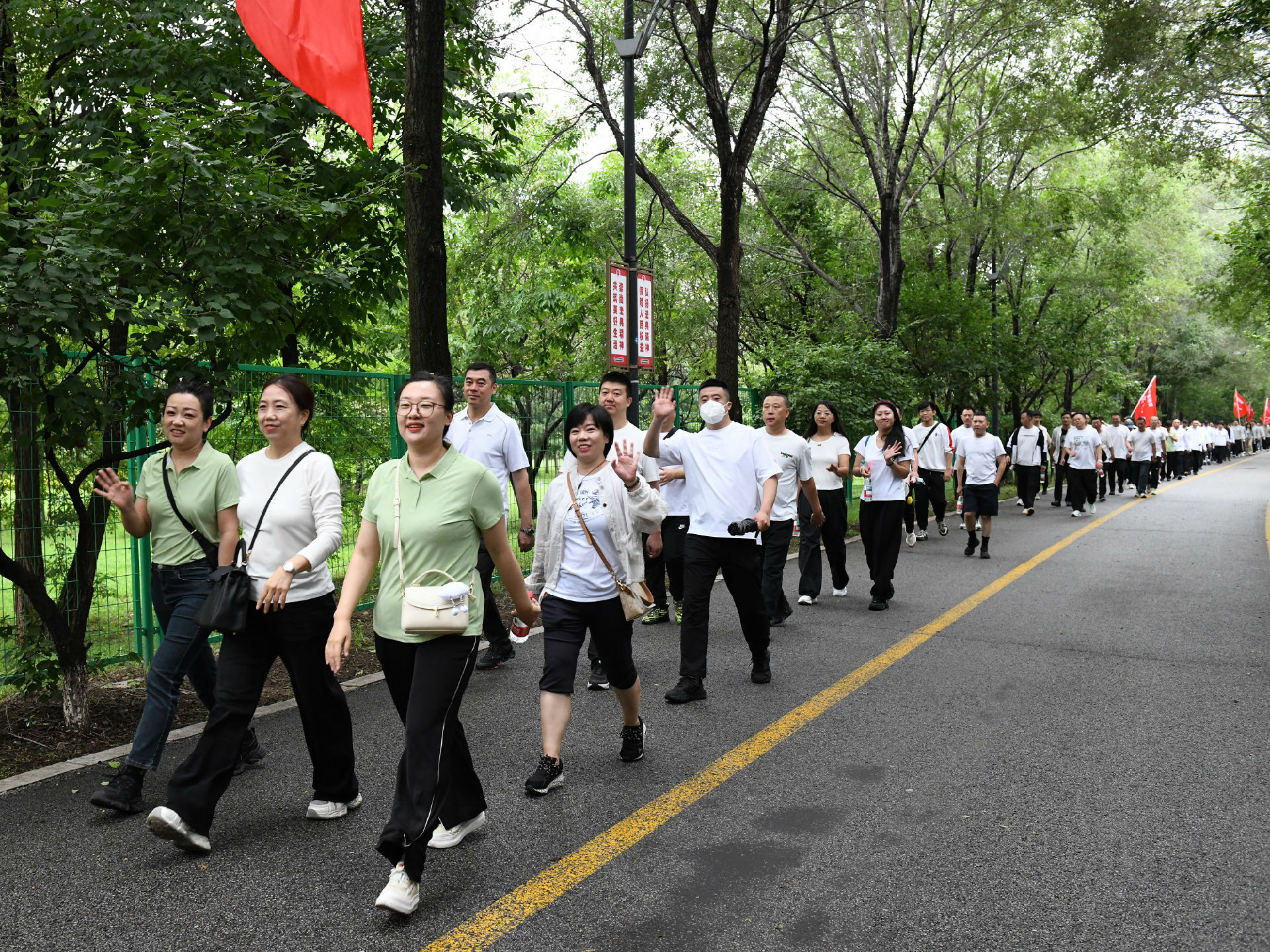 撫順特鋼第一副總經(jīng)理穆立峰為員工徒步健康行活動發(fā)令。伴隨著發(fā)令聲,公司領導與400余名員工圍繞月牙島開始5公里徒步健康行。一路上,大家揮舞隊旗、彩旗踏歌而行,每個人的臉上都洋溢著幸福的笑容。經(jīng)過一個多小時的努力,所有人都勝利到達終點。