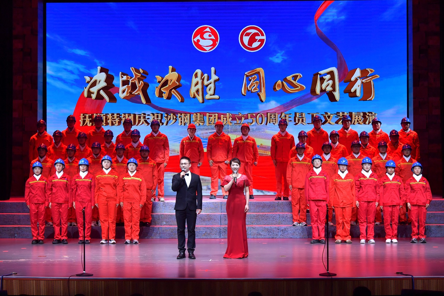 沙鋼集團常務(wù)執(zhí)行董事、總裁龔盛,沙鋼集團調(diào)研組成員,撫順特鋼領(lǐng)導(dǎo)班子成員、各單位中層干部、科室、車間、班組職工代表300余人濟濟一堂,共同欣賞、品味這場“視覺盛宴”,聆聽沙鋼集團建廠50年歷史鐘聲,感受撫順特鋼厚重文化底蘊,并重溫加入沙鋼集團以來相融發(fā)展、創(chuàng)新發(fā)展、高質(zhì)量發(fā)展的輝煌篇章。現(xiàn)場歡呼聲、喝彩聲、掌聲如浪潮奔涌,撫順特鋼員工們將對企業(yè)的熱愛與祝?;髯顒尤说囊舴囗憣儆阡撹F人的時代最強音。
