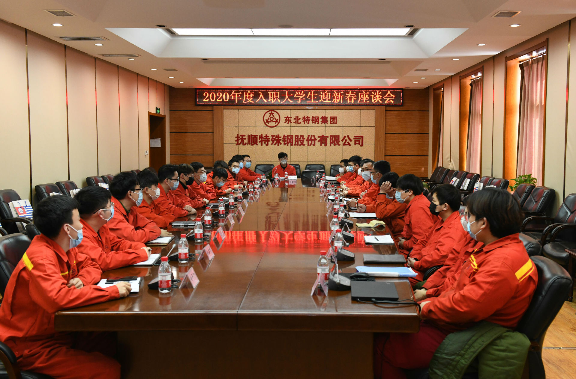 為體現(xiàn)企業(yè)對(duì)新入職大學(xué)生員工的關(guān)心、關(guān)愛之情,傾聽他們對(duì)個(gè)人成長成才及企業(yè)發(fā)展等方面的意見和建議,增進(jìn)他們對(duì)企業(yè)的歸屬感和認(rèn)同感,2月4日下午(農(nóng)歷臘月二十三),沙鋼集團(tuán)東北特鋼撫順公司舉辦了2020年度入職大學(xué)生員工迎新春座談會(huì)。當(dāng)天,撫順特鋼常務(wù)副總經(jīng)理、黨委副書記、紀(jì)委書記祁勇等與21名新入職的大學(xué)生員工們親切座談交流,暢想美好未來。